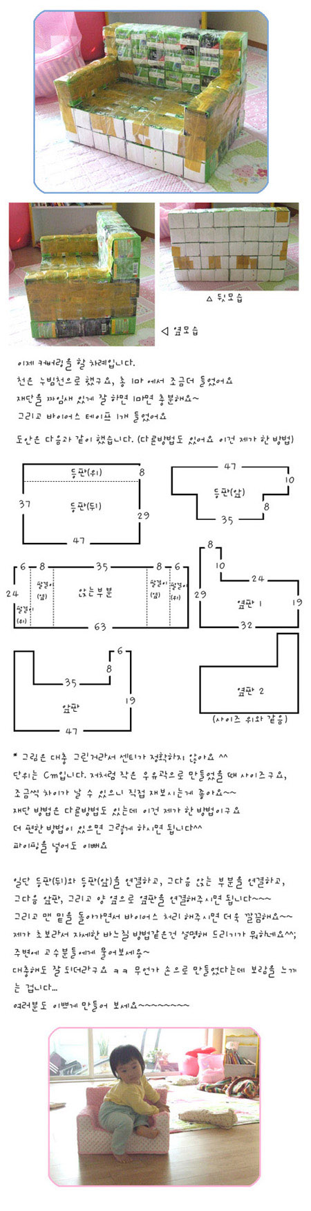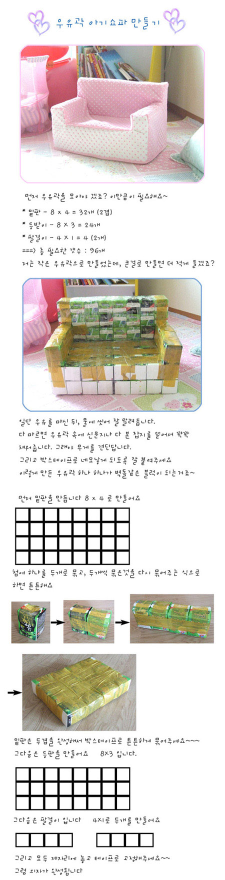 우유곽 아기쇼파 만들기 ^^