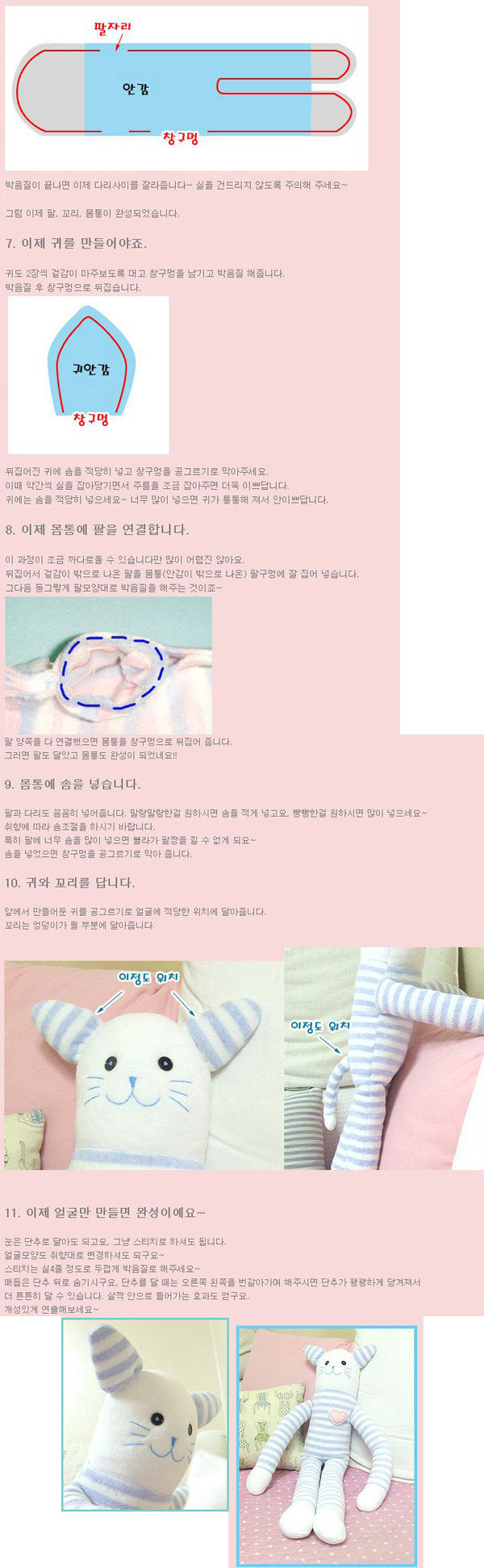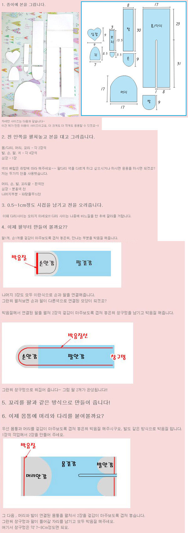 천, 실, 가위, 솜, 바늘 만 있으면 되구요~ 천 이름은 타올천, 또는 테리원단이라고 해요