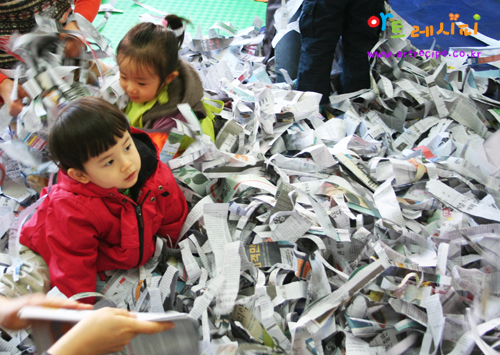 아이들이 신문지 찢기 놀이를 정말 좋아하더라구요.