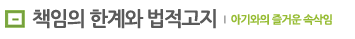 어떠한 경우에도 '아기와의 즐거운 속삭임'은 서비스, 자료 및 제품과 관련하여 직접, 간접, 부수적, 징벌적, 파생적인 손해에 대해서 책임을 지지 않습니다.